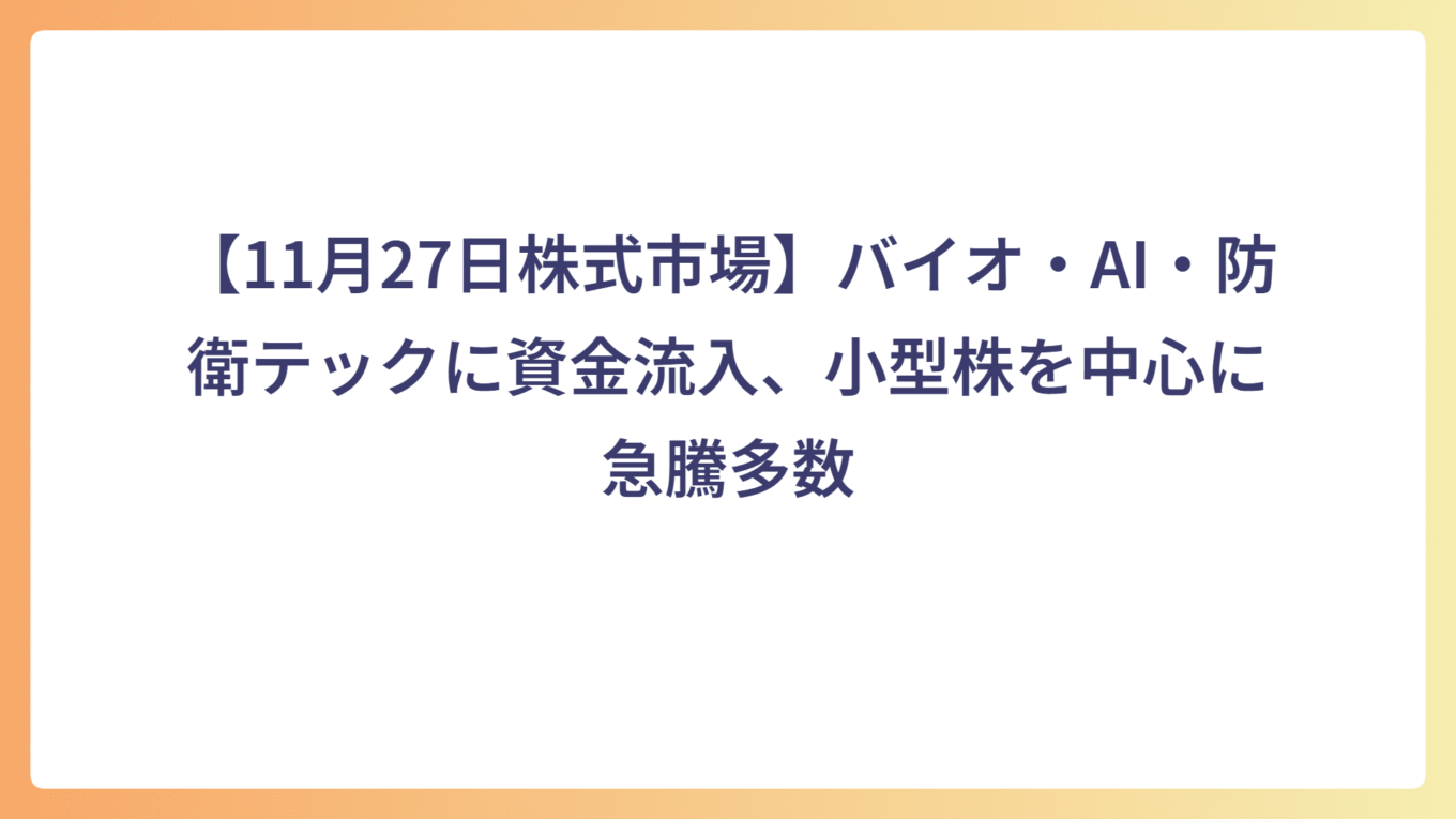【11月27日株式市場】バイオ・AI・防衛テックに資金流入、小型株を中心に急騰多数