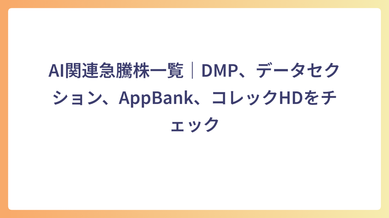 AI関連急騰株一覧|DMP、データセクション、AppBank、コレックHDをチェック