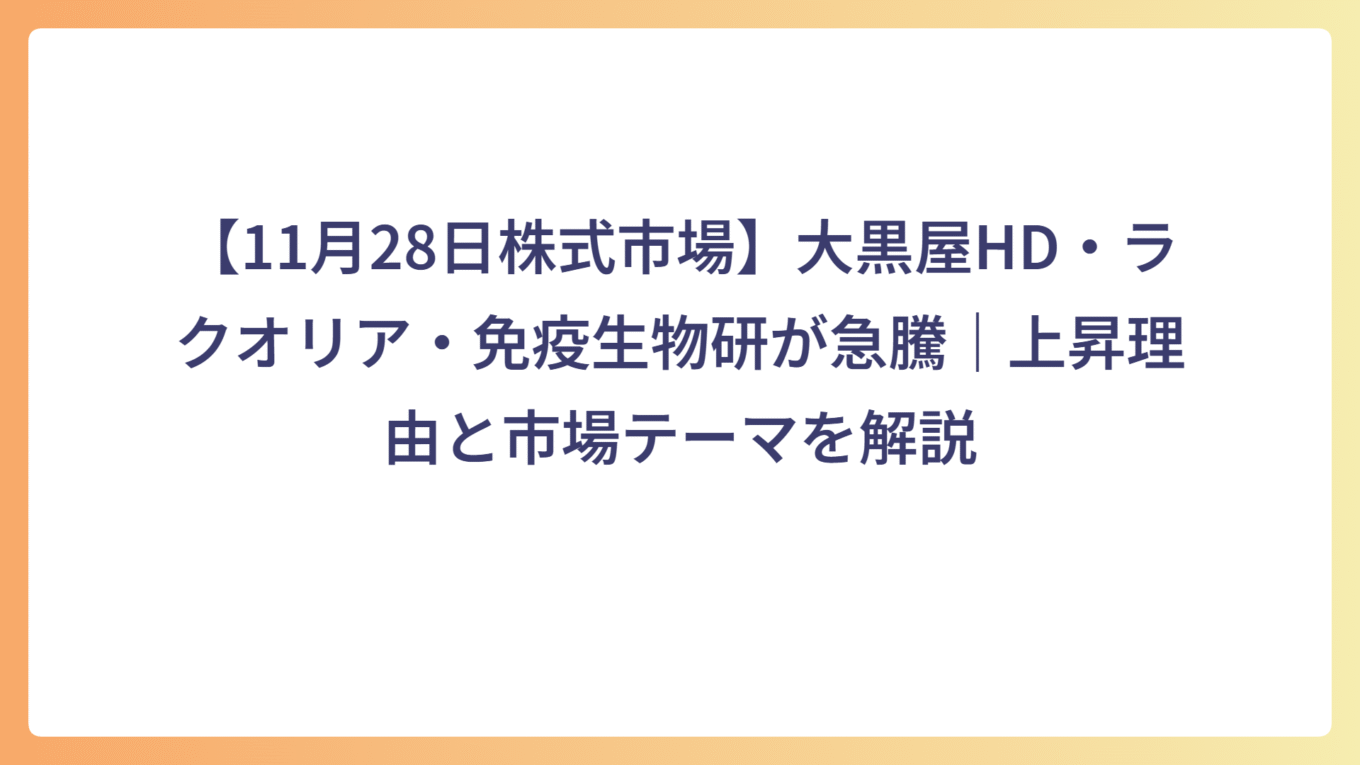 【11月28日株式市場】大黒屋HD・ラクオリア・免疫生物研が急騰|上昇理由と市場テーマを解説