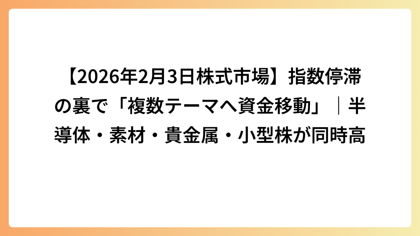 【2026年2月3日株式市場】指数停滞の裏で「複数テーマへ資金移動」|半導体・素材・貴金属・小型株が同時高