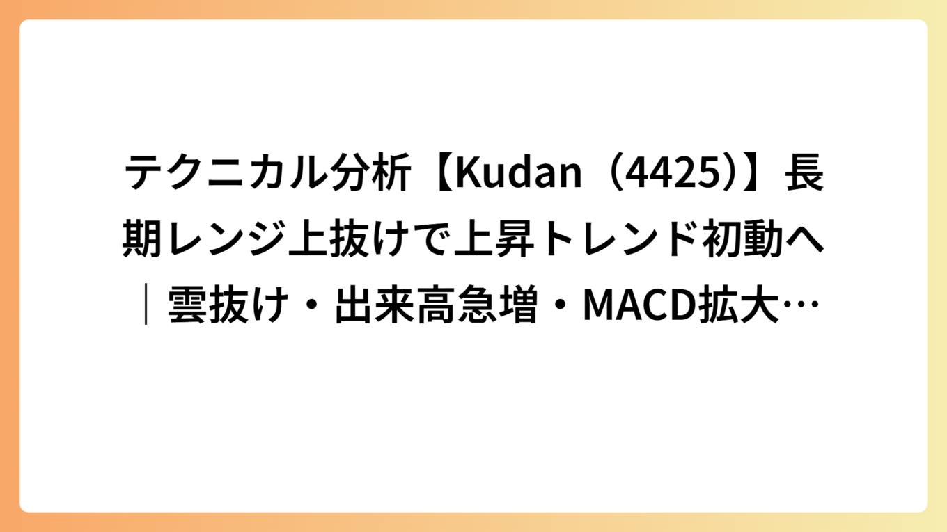 テクニカル分析【Kudan(4425)】長期レンジ上抜けで上昇トレンド初動へ|雲抜け・出来高急増・MACD拡大が示す需給転換
