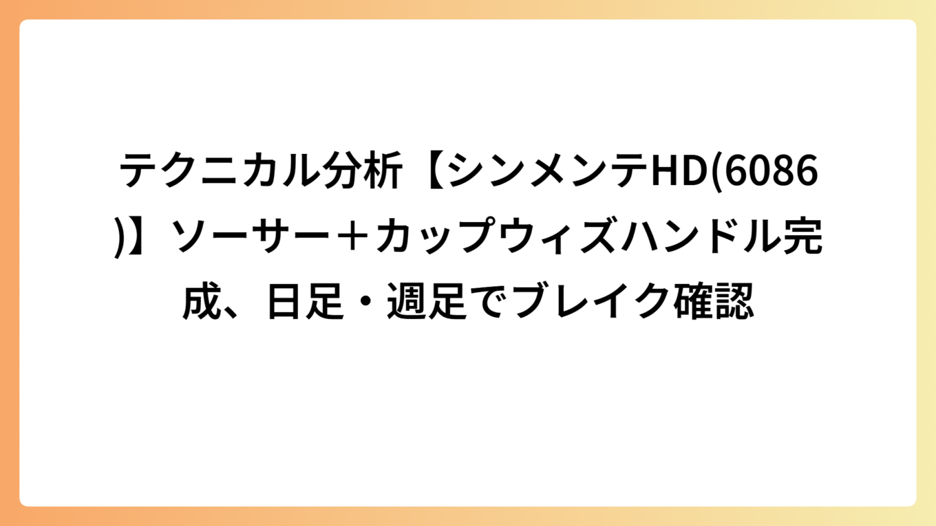 テクニカル分析【シンメンテHD(6086)】ソーサー+カップウィズハンドル完成、日足・週足でブレイク確認