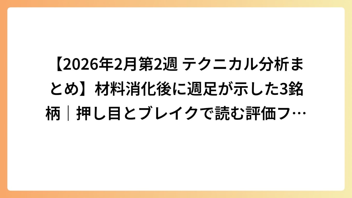 【2026年2月第2週 テクニカル分析まとめ】材料消化後に週足が示した3銘柄|押し目とブレイクで読む評価フェーズの変化