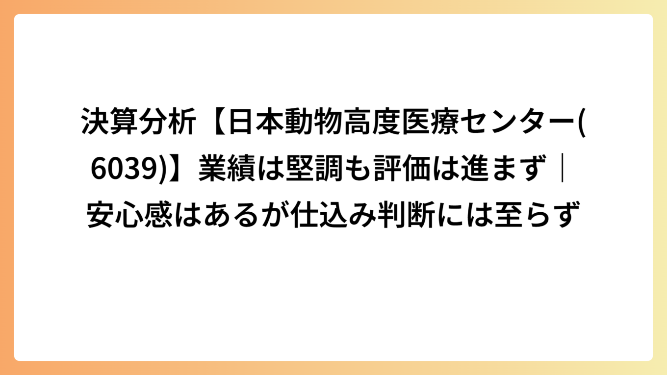決算分析【日本動物高度医療センター(6039)】業績は堅調も評価は進まず|安心感はあるが仕込み判断には至らず
