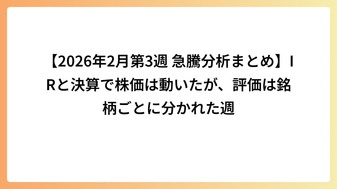 【2026年2月第3週 急騰分析まとめ】IRと決算で株価は動いたが、評価は銘柄ごとに分かれた週
