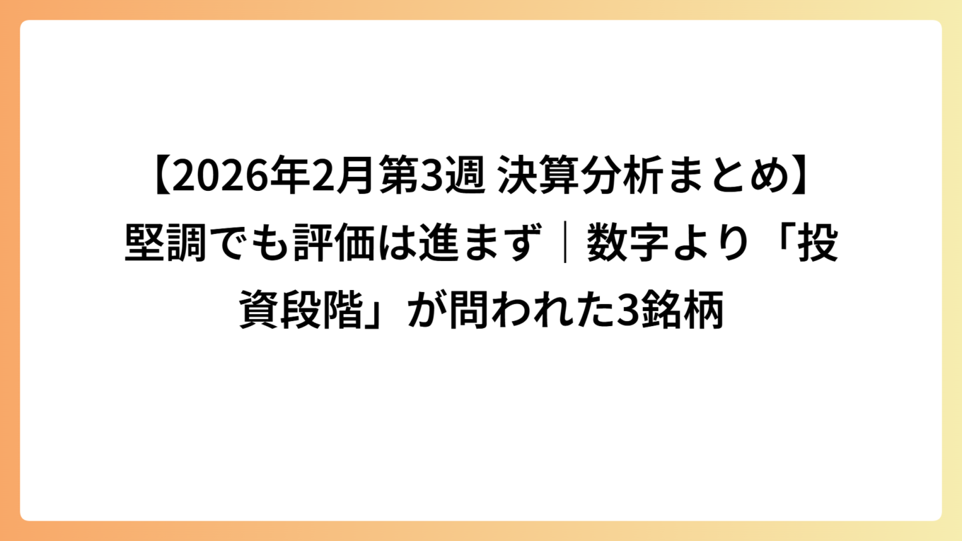 【2026年2月第3週 決算分析まとめ】堅調でも評価は進まず|数字より「投資段階」が問われた3銘柄