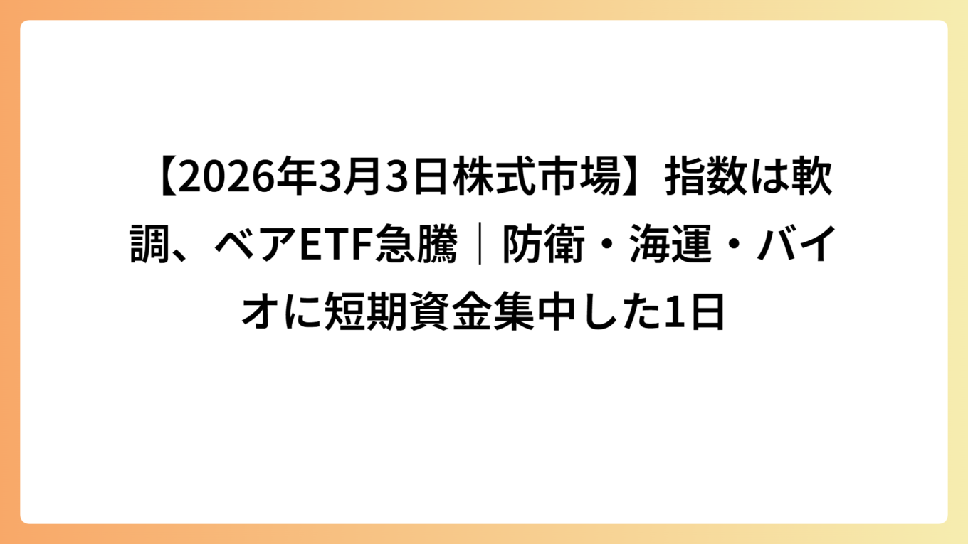 【2026年3月3日株式市場】指数は軟調、ベアETF急騰|防衛・海運・バイオに短期資金集中した1日