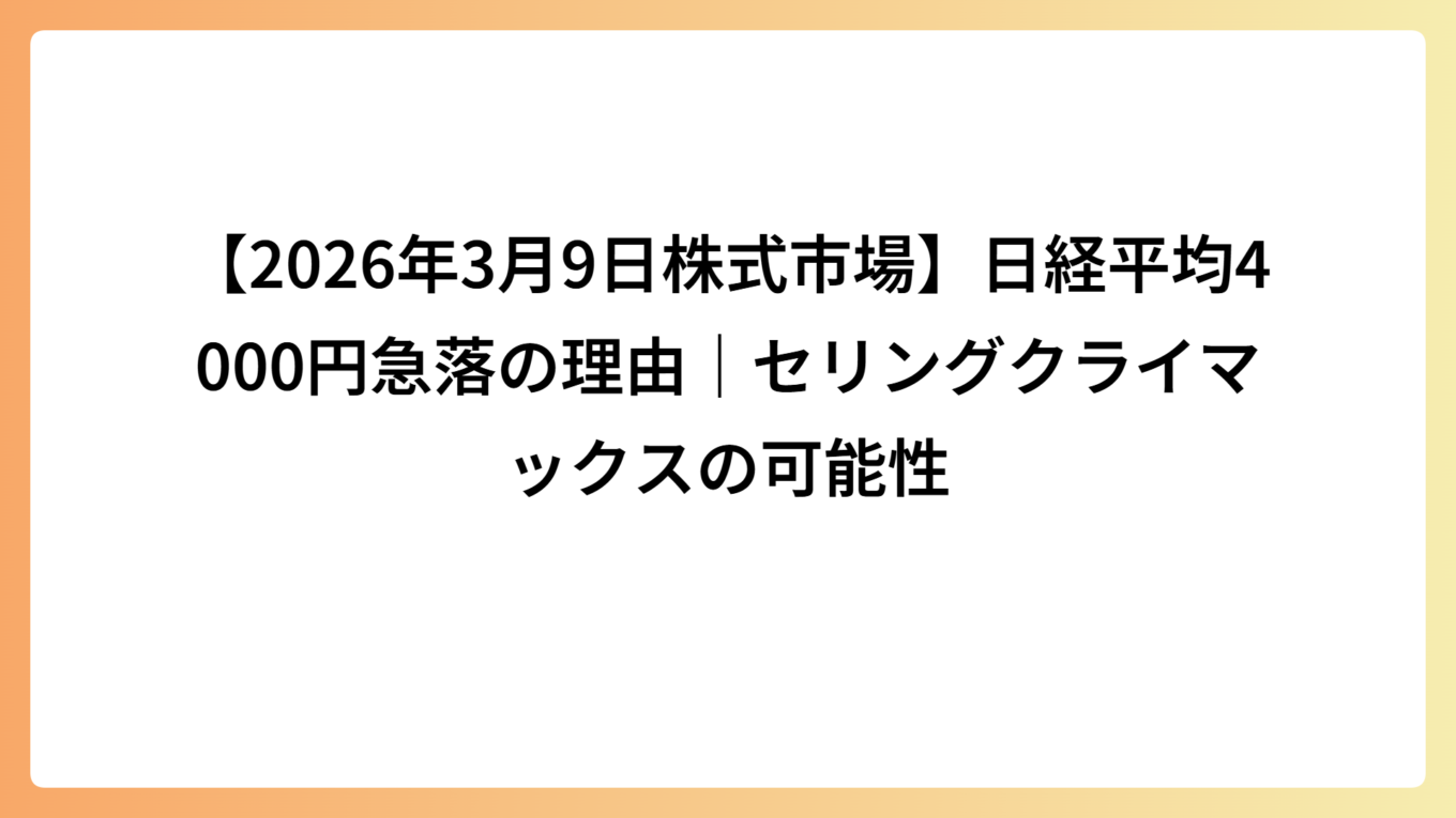 【2026年3月9日株式市場】日経平均4000円急落の理由|セリングクライマックスの可能性