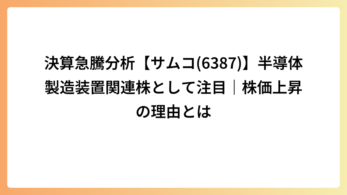 決算急騰分析【サムコ(6387)】半導体製造装置関連株として注目|株価上昇の理由とは