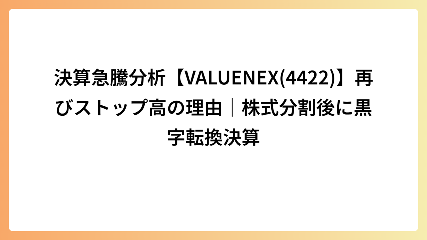 【VALUE NEX(4422)】なぜストップ高水準まで買われたのか|株式分割が材料視