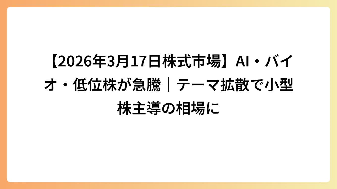 【2026年3月17日株式市場】AI・バイオ・低位株が急騰|テーマ拡散で小型株主導の相場に