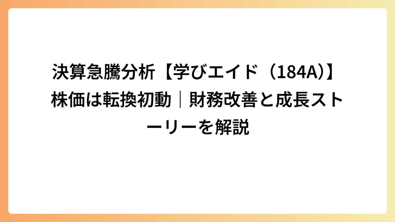 決算急騰分析【学びエイド(184A)】株価は転換初動|財務改善と成長ストーリーを解説
