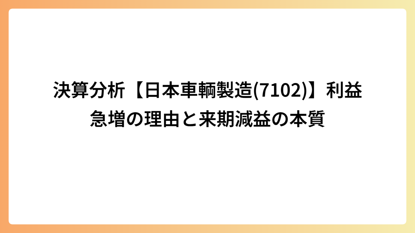決算分析【日本車輌製造(7102)】利益急増の理由と来期減益の本質