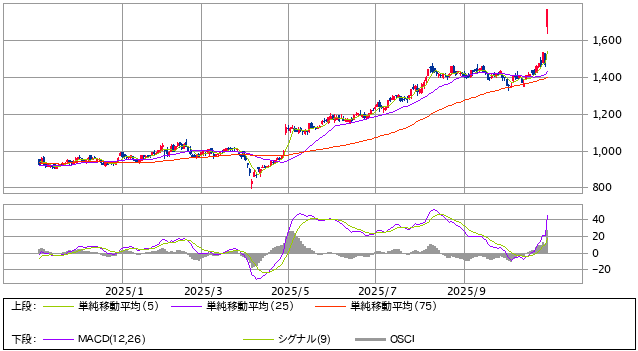 特に、25日移動平均線を上抜けたことが、買いの勢いを後押ししました。サポートラインは前回高値付近の1,400円前後、レジスタンスラインは心理的節目の1,600円前後に位置しています。