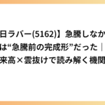 【朝日ラバー(5162)】急騰しなかった理由は“急騰前の完成形”だった|決算×出来高×雲抜けで読み解く機関の初動