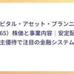 キャピタル・アセット・プランニング(3965)株価と事業内容|安定配当と株主優待で注目の金融システム株
