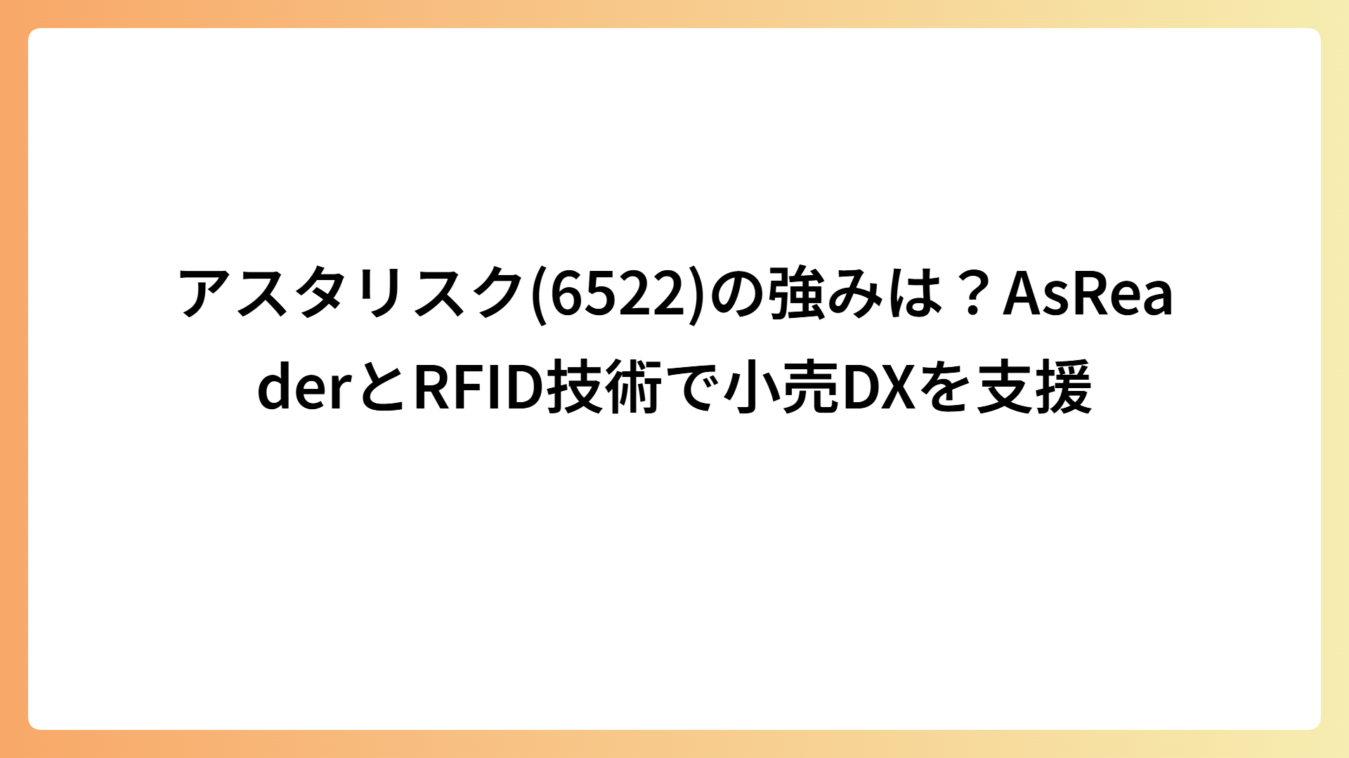 アスタリスク(6522)の強みは?AsReaderとRFID技術で小売DXを支援 2026.04.16 IT・DX my-next-goal-is-fire ホワイト企業に転職できたので次はFIREを目指します
