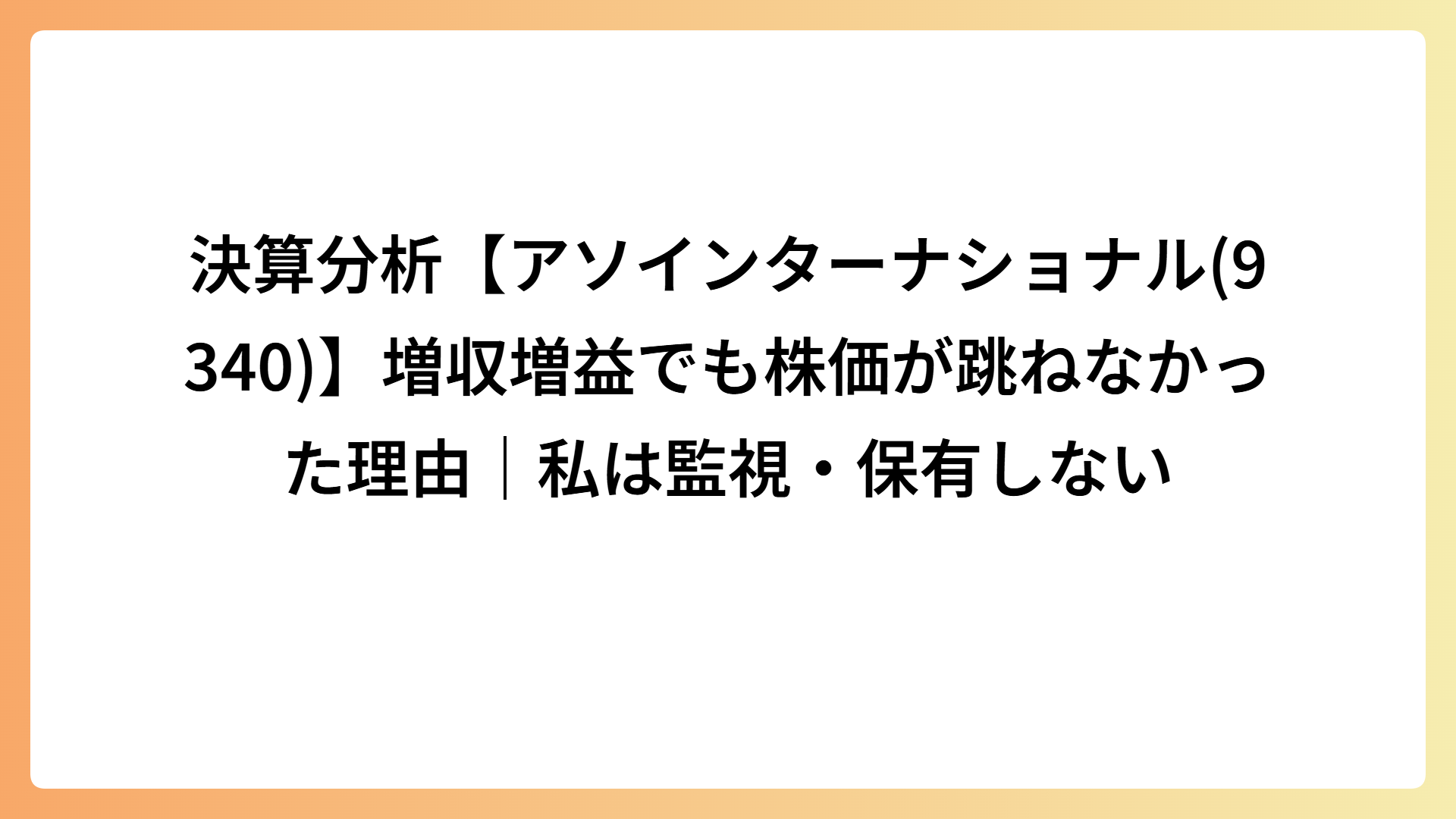 決算分析【アソインターナショナル(9340)】増収増益でも株価が跳ねなかった理由|私は監視・保有しない 2026.02.14 テーマ株 my-next-goal-is-fire ホワイト企業に転職できたので次はFIREを目指します