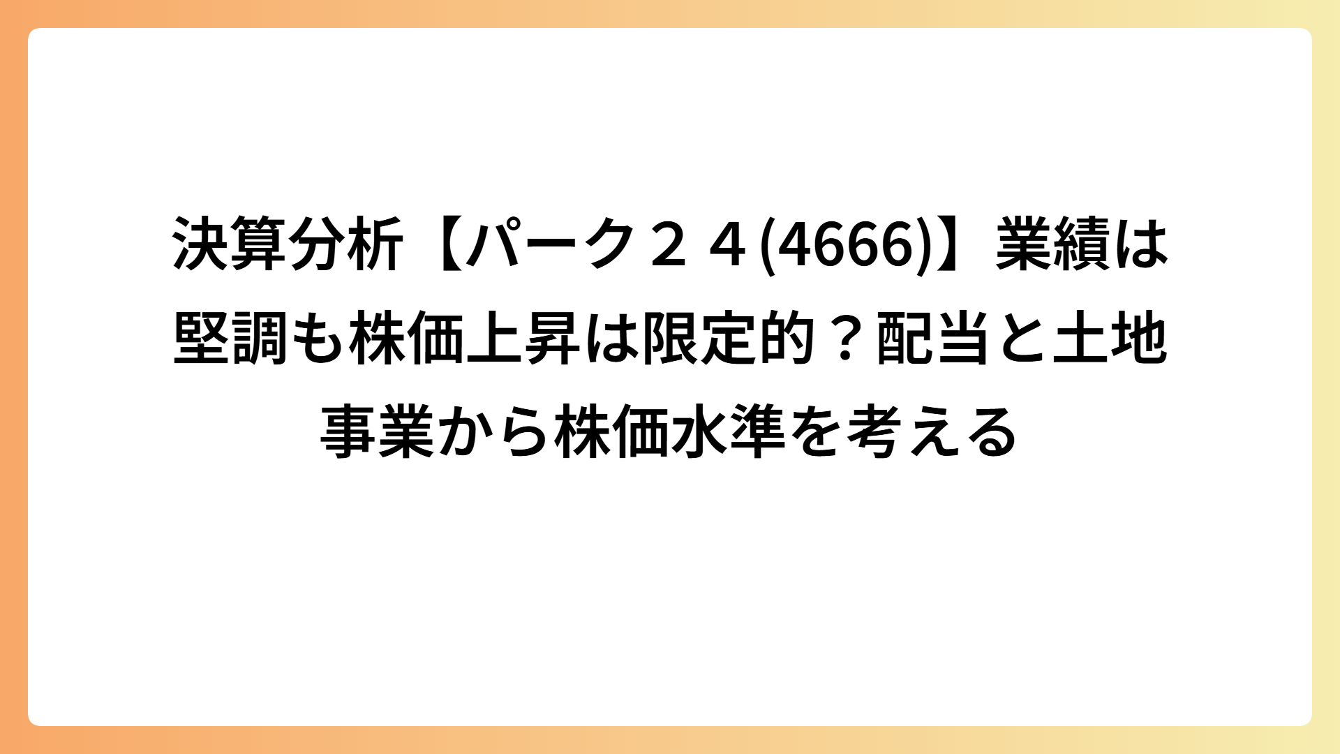 決算分析【パーク24(4666)】業績は堅調も株価上昇は限定的?配当と土地事業から株価水準を考える 2026.02.28 テーマ株 my-next-goal-is-fire ホワイト企業に転職できたので次はFIREを目指します