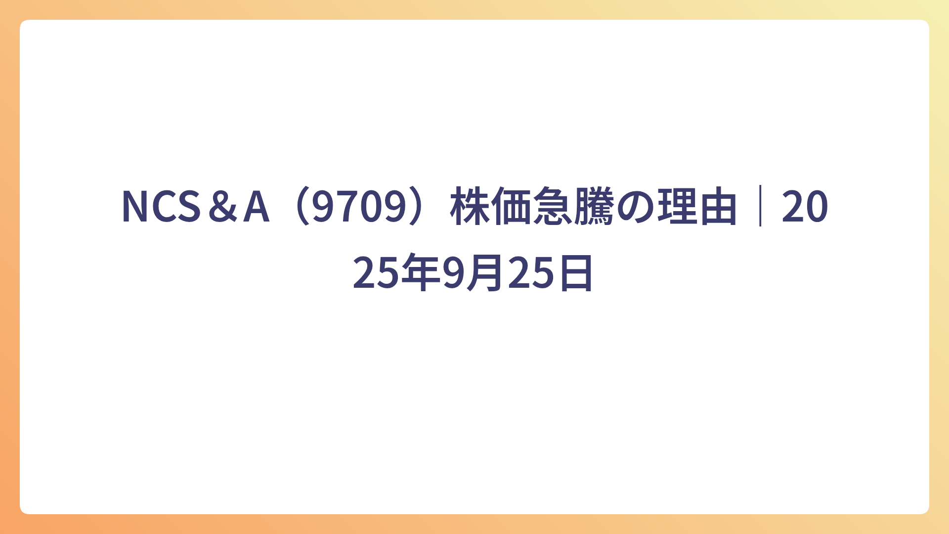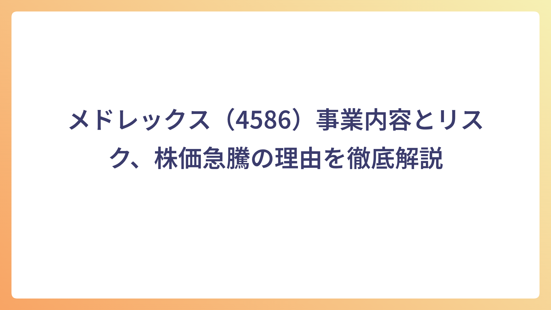 CATEGORY 個別株 【NANOMRNA(4571)】株価急騰の理由と今後の見通しを徹底分析 2025.10.11 個別株 my-next-goal-is-fire ホワイト企業に転職できたので次はFIREを目指します 【河西工業(7256)】株価急騰の理由と今後の見通しを徹底分析 2025.10.08 個別株 my-next-goal-is-fire ホワイト企業に転職できたので次はFIREを目指します 【レナサイエンス(4889)】株価急騰の理由と今後の見通しを徹底分析 2025.10.07 個別株 my-next-goal-is-fire ホワイト企業に転職できたので次はFIREを目指します 【テクニスコ(2962)】株価急騰の理由と今後の見通しを徹底分析 2025.10.05 個別株 my-next-goal-is-fire ホワイト企業に転職できたので次はFIREを目指します 【AppBank(6177)】の上昇理由・事業内容・投資リスクを徹底解説 2025.10.01 個別株 my-next-goal-is-fire ホワイト企業に転職できたので次はFIREを目指します フェリシモ(3396)の株価上昇理由と事業内容・リスクまとめ 2025.10.01 個別株 my-next-goal-is-fire ホワイト企業に転職できたので次はFIREを目指します Link-Uグループ(4446)の株価急騰:急騰理由と今後の展望 2025.09.29 個別株 my-next-goal-is-fire ホワイト企業に転職できたので次はFIREを目指します NCS&A「E.M.O®」の特徴と市場価値|自治体DXを支える次世代システム 2025.09.28 個別株 my-next-goal-is-fire ホワイト企業に転職できたので次はFIREを目指します NCS&A(9709)株価急騰の理由|2025年9月25日 2025.09.27 個別株 my-next-goal-is-fire ホワイト企業に転職できたので次はFIREを目指します メドレックス(4586)事業内容とリスク、株価急騰の理由を徹底解説 2025.09.27 個別株 my-next-goal-is-fire ホワイト企業に転職できたので次はFIREを目指します もっと見る