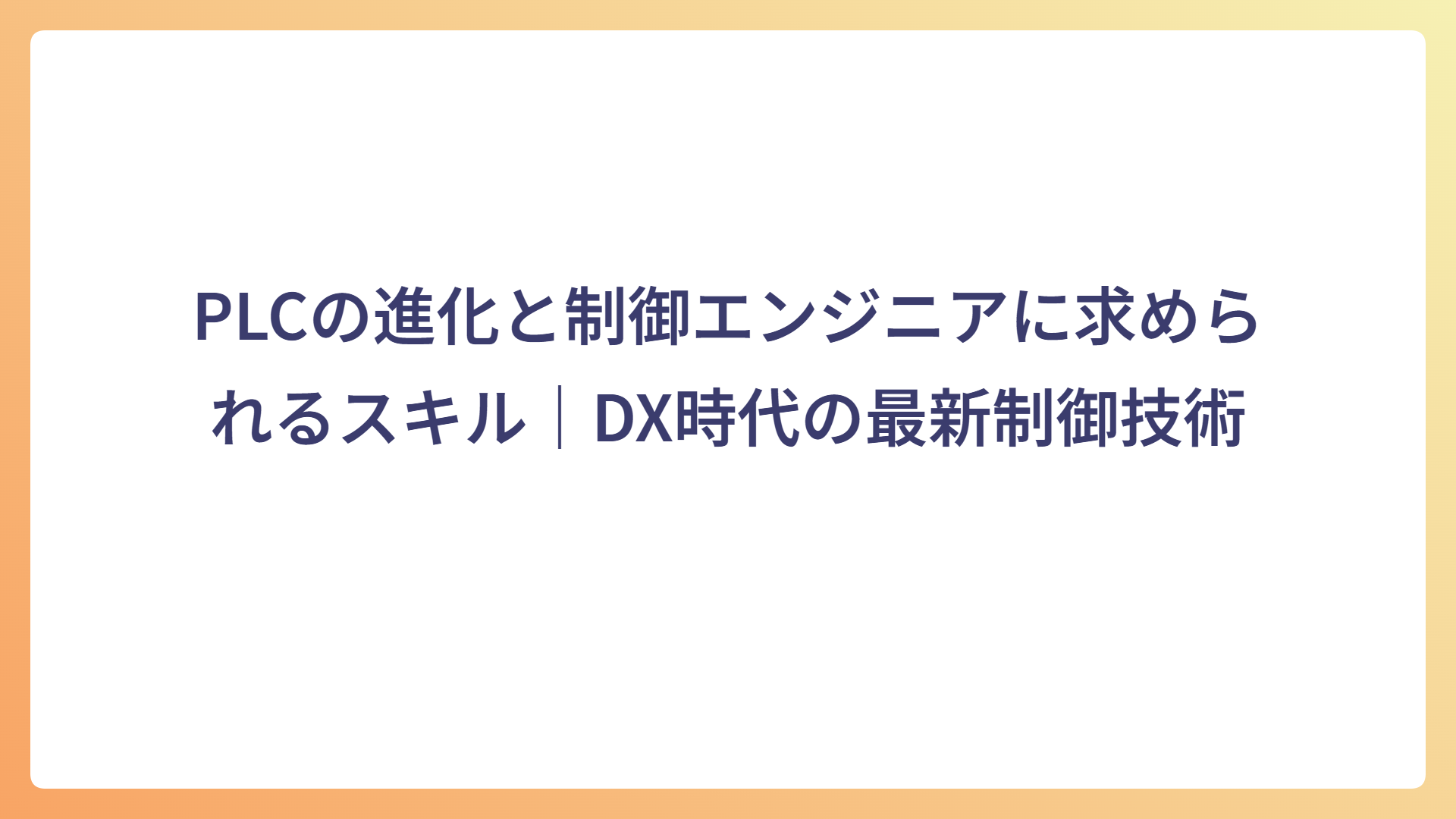 PLCの進化と制御エンジニアに求められるスキル|DX時代の最新制御技術 2025.09.15 システム・電気制御 my-next-goal-is-fire ホワイト企業に転職できたので次はFIREを目指します
