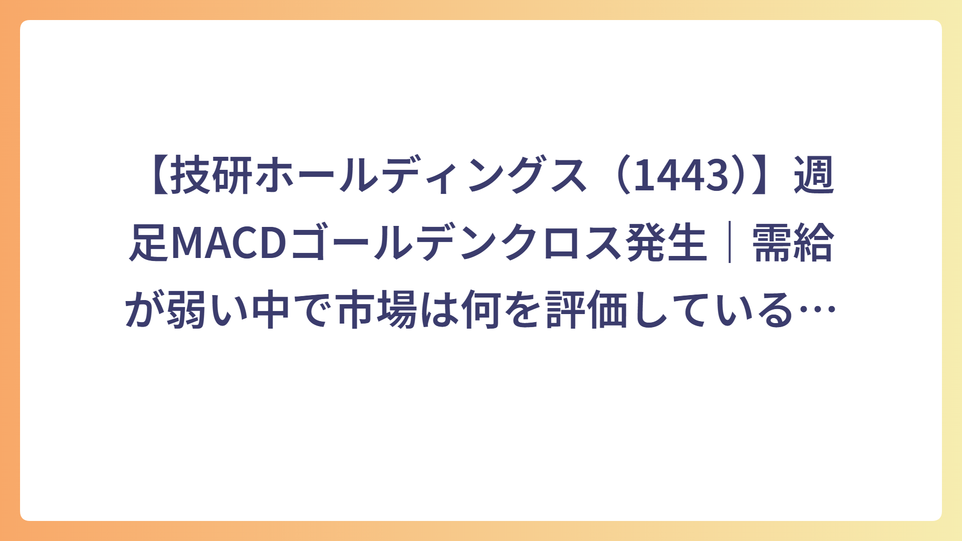 【技研ホールディングス(1443)】週足MACDゴールデンクロス発生|需給が弱い中で市場は何を評価しているのか? 2026.01.11 テクニカル my-next-goal-is-fire ホワイト企業に転職できたので次はFIREを目指します