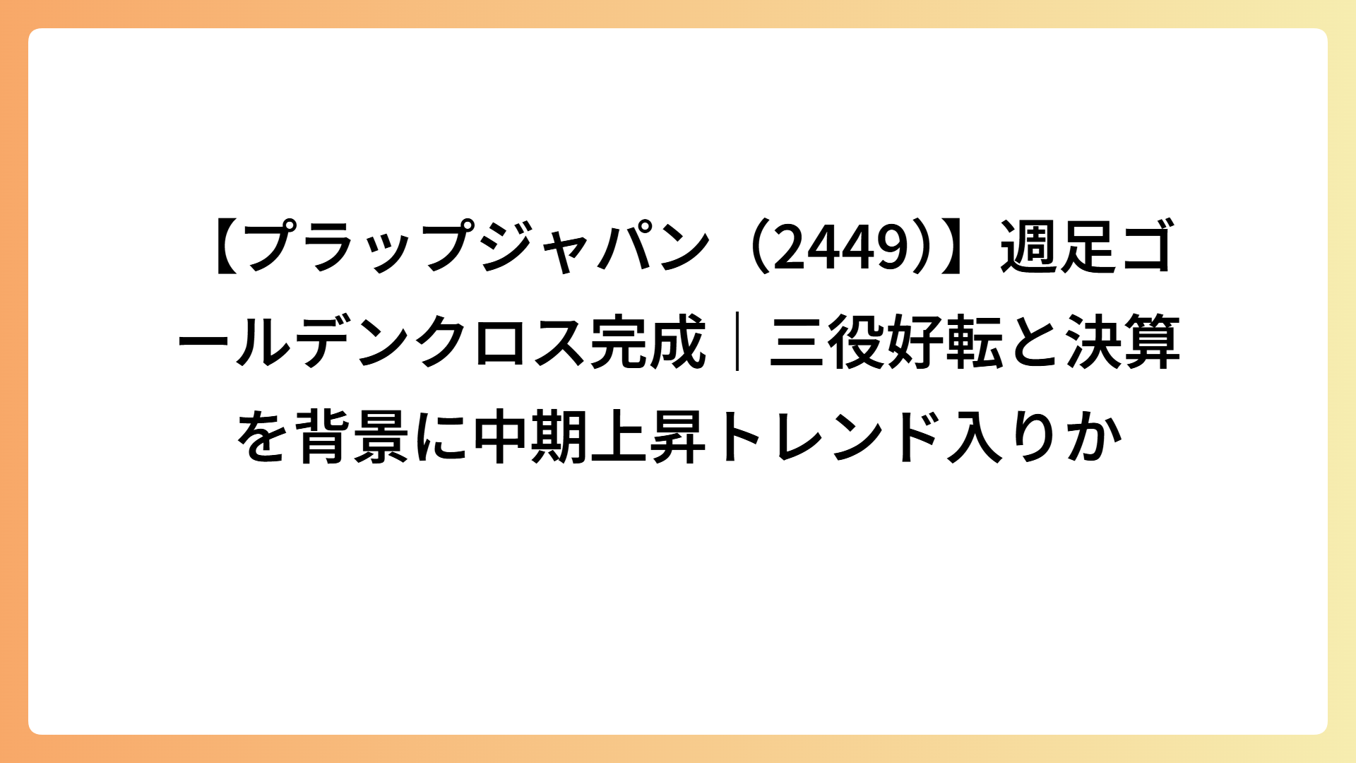 【プラップジャパン(2449)】週足ゴールデンクロス完成|三役好転と決算を背景に中期上昇トレンド入りか 2026.01.12 テクニカル my-next-goal-is-fire ホワイト企業に転職できたので次はFIREを目指します