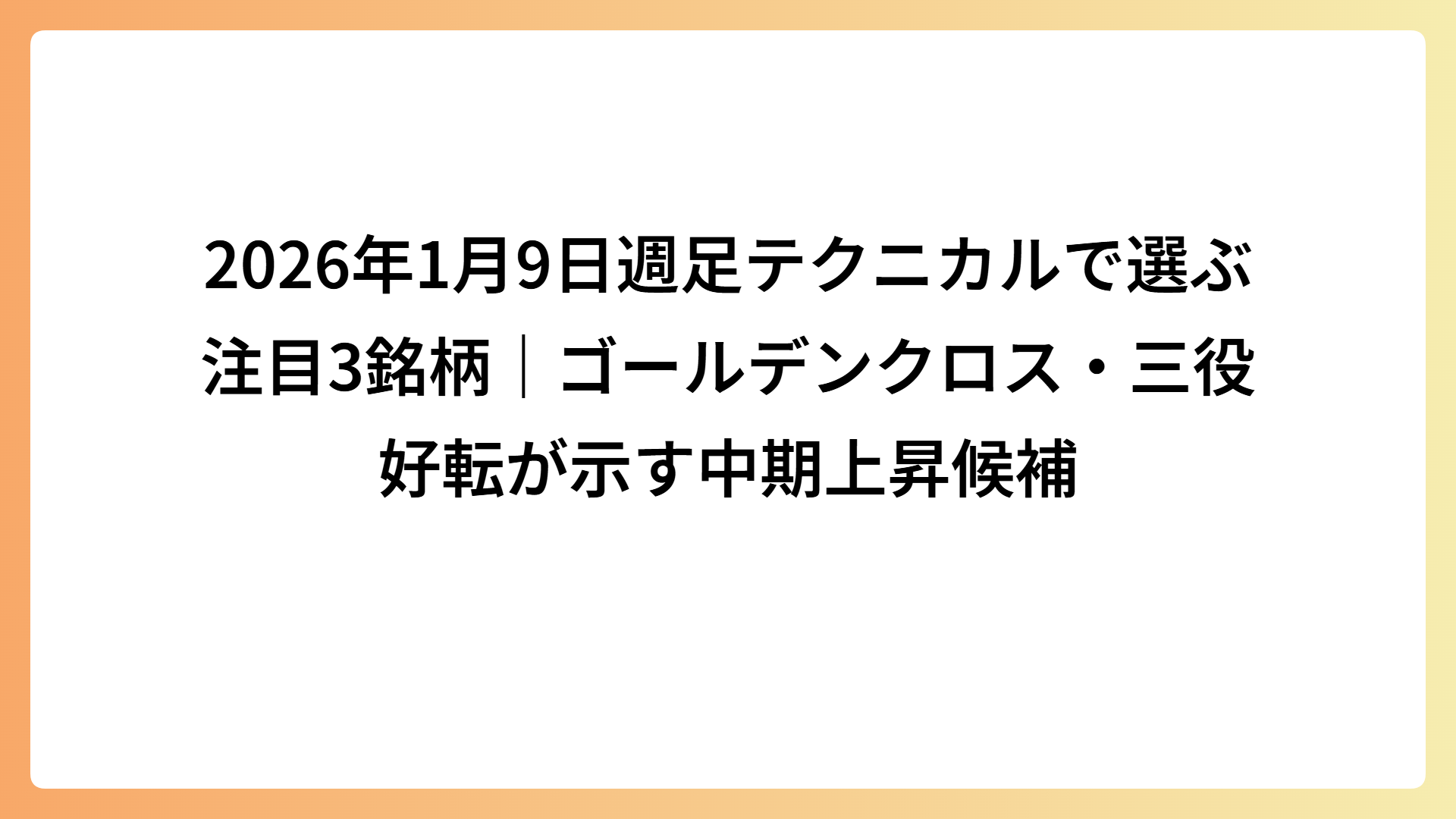 2026年1月9日週足テクニカルで選ぶ注目3銘柄|ゴールデンクロス・三役好転が示す中期上昇候補 2026.01.12 テクニカル my-next-goal-is-fire ホワイト企業に転職できたので次はFIREを目指します