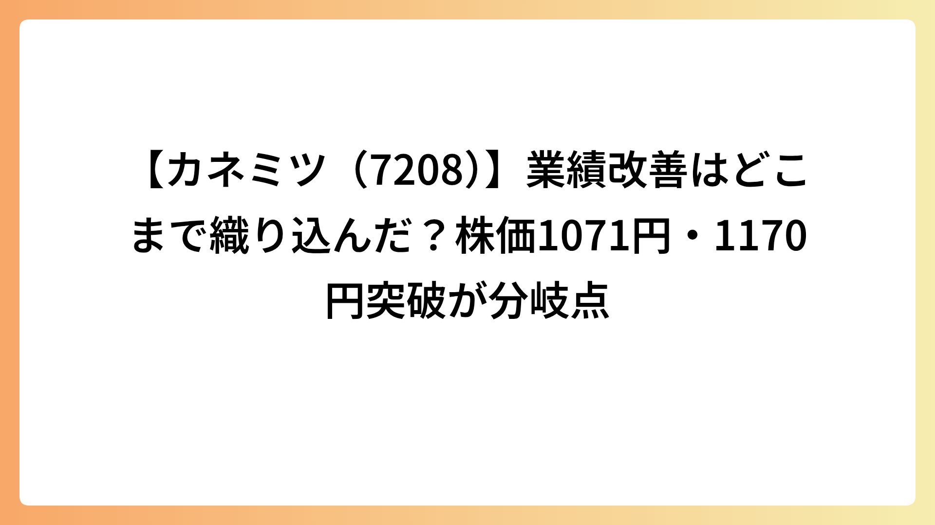 【カネミツ(7208)】業績改善はどこまで織り込んだ?株価1071円・1170円突破が分岐点 2026.01.12 テクニカル my-next-goal-is-fire ホワイト企業に転職できたので次はFIREを目指します