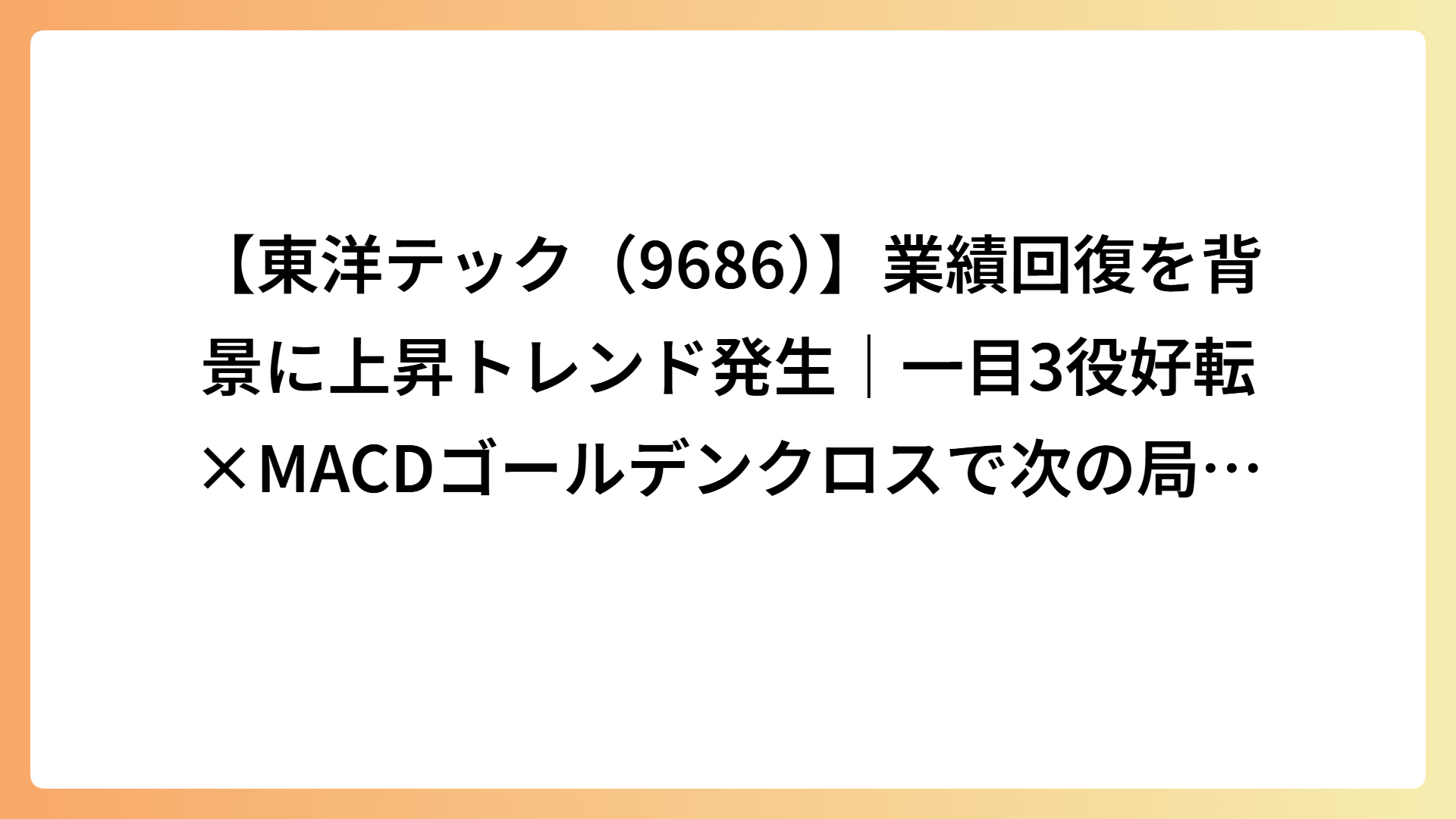 【東洋テック(9686)】業績回復を背景に上昇トレンド発生|一目3役好転×MACDゴールデンクロスで次の局面へ 2026.01.12 テクニカル my-next-goal-is-fire ホワイト企業に転職できたので次はFIREを目指します