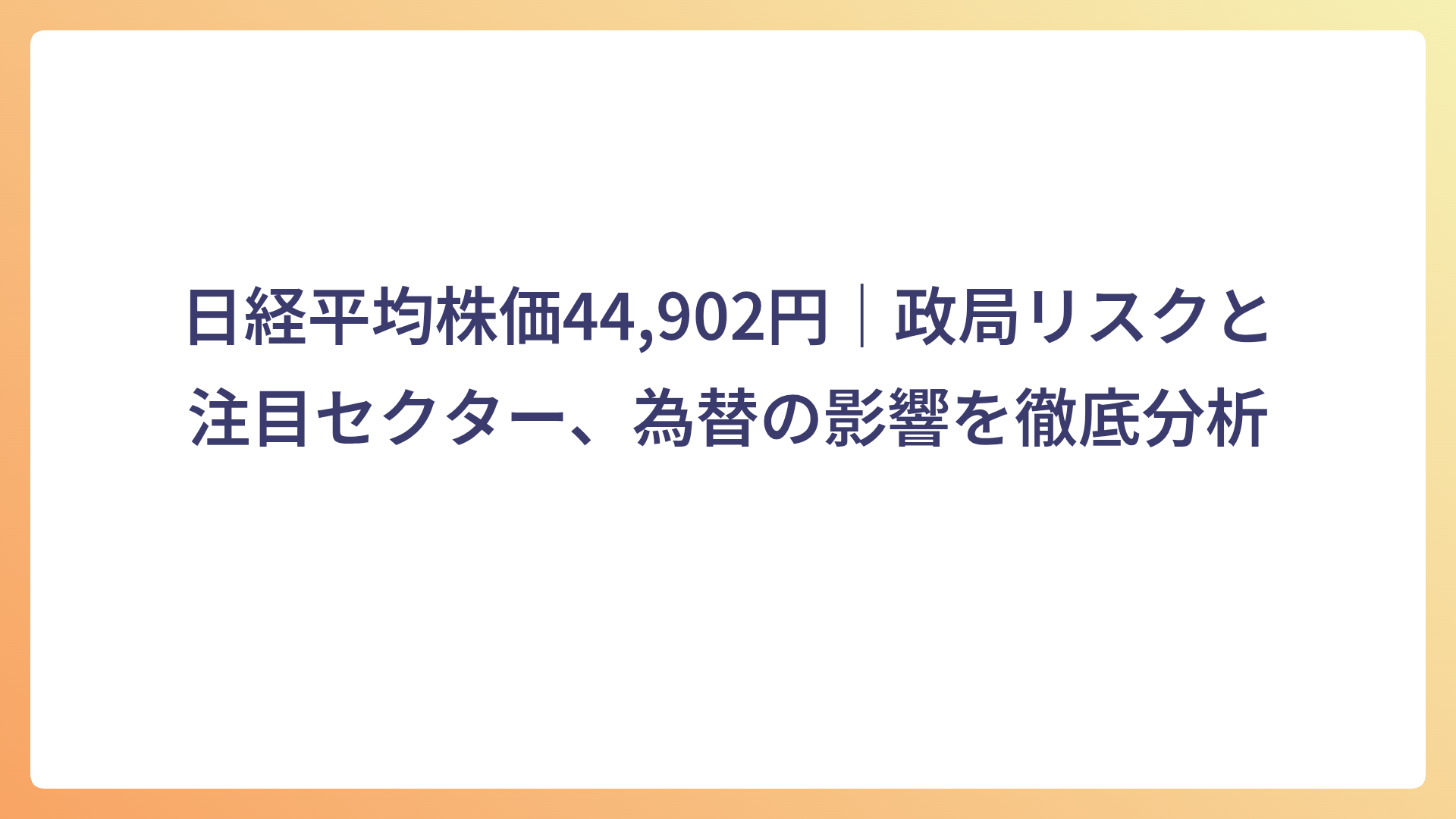 日経平均株価44,902円|政局リスクと注目セクター、為替の影響を徹底分析 2025.09.16 本日の市場 my-next-goal-is-fire ホワイト企業に転職できたので次はFIREを目指します
