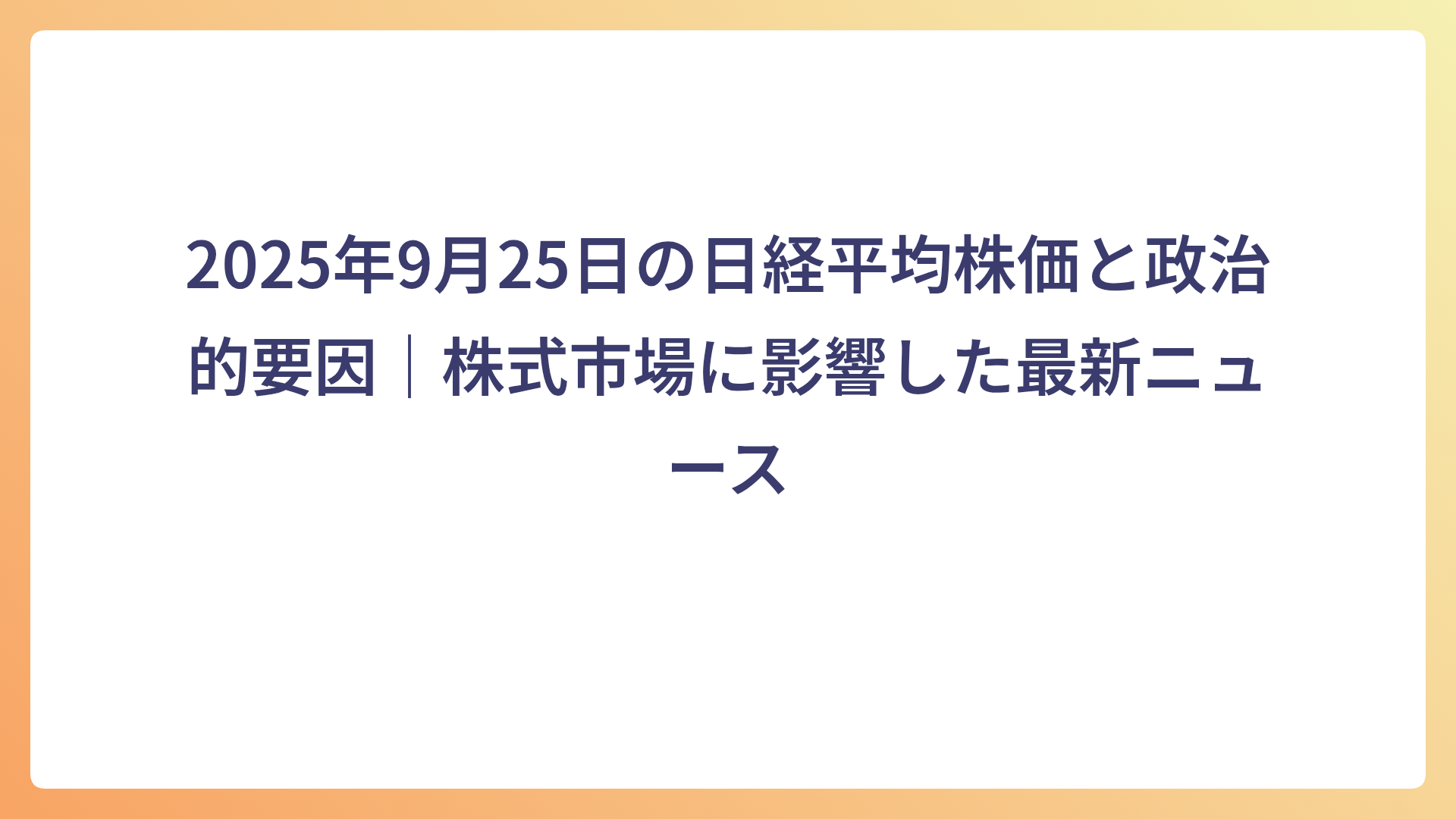 2025年9月25日の日経平均株価と政治的要因|株式市場に影響した最新ニュース 2025.09.27 本日の市場 my-next-goal-is-fire ホワイト企業に転職できたので次はFIREを目指します
