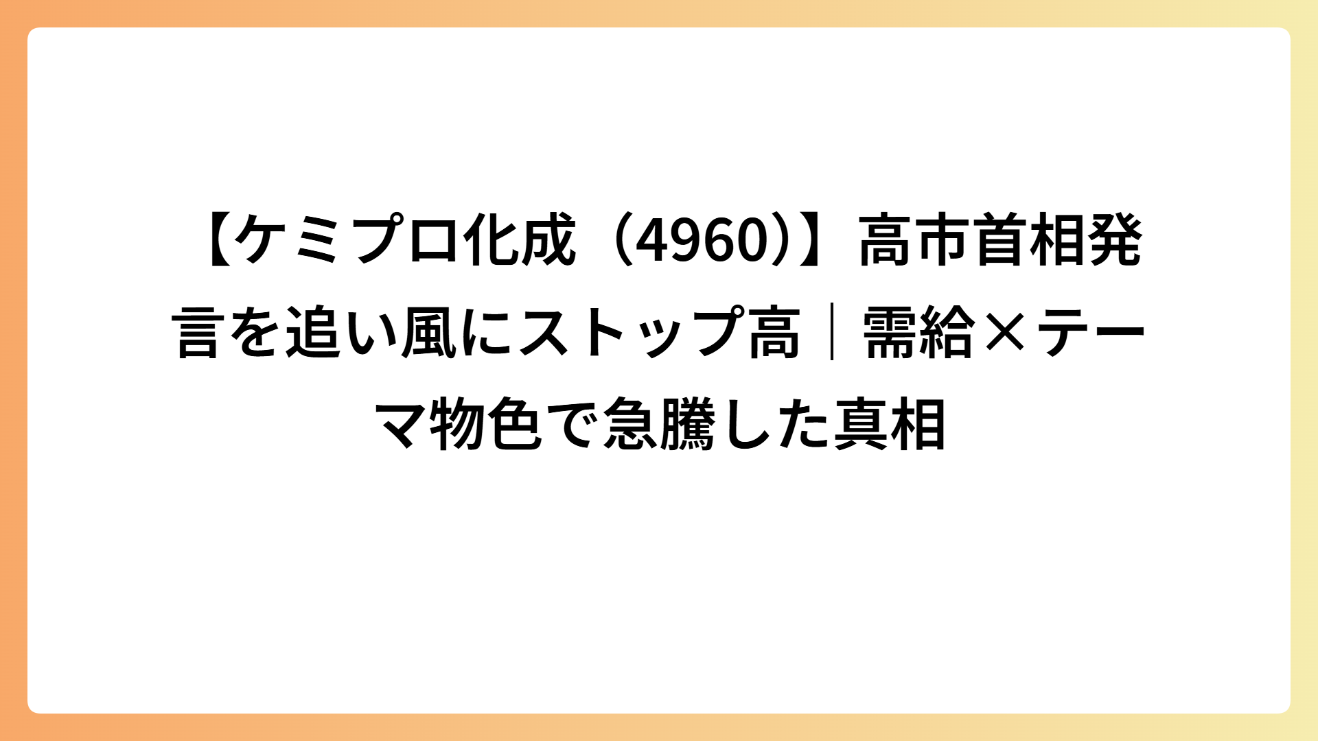 決算やIRとは無関係に、政策テーマ × テーマ物色 × 短期資金 × 需給で株価が押し上げられた典型的な動きと言えます。