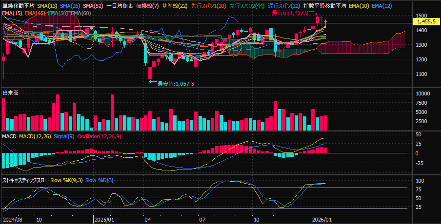 週足チャートを見ると、長い横ばいを経て明確に上放れ。