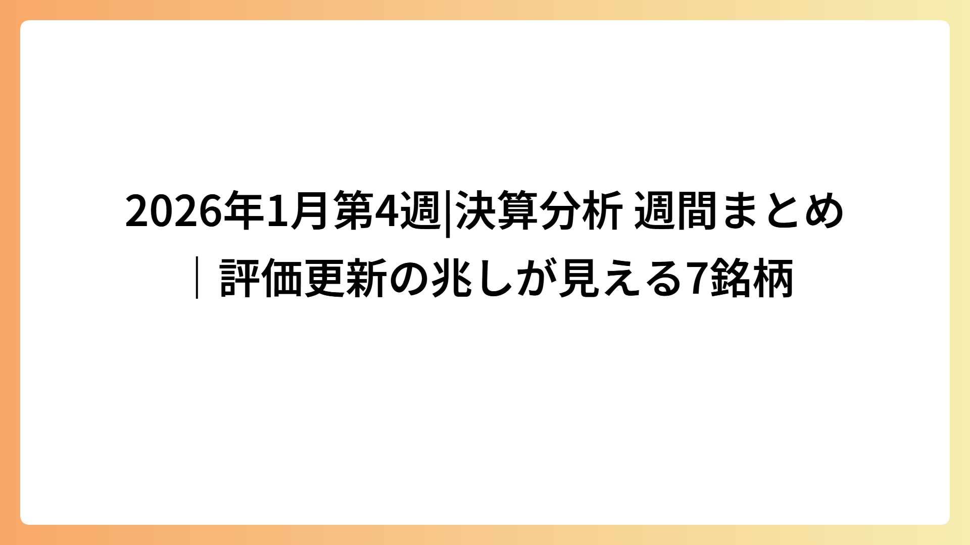 業績が良いから上がるのではなく、業績が“これから変わる”から株価が先に動く