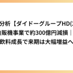 決算分析【ダイドーグループHD(2590)】自販機事業で約300億円減損|海外飲料成長で来期は大幅増益へ