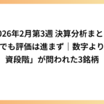 【2026年2月第3週 決算分析まとめ】堅調でも評価は進まず|数字より「投資段階」が問われた3銘柄