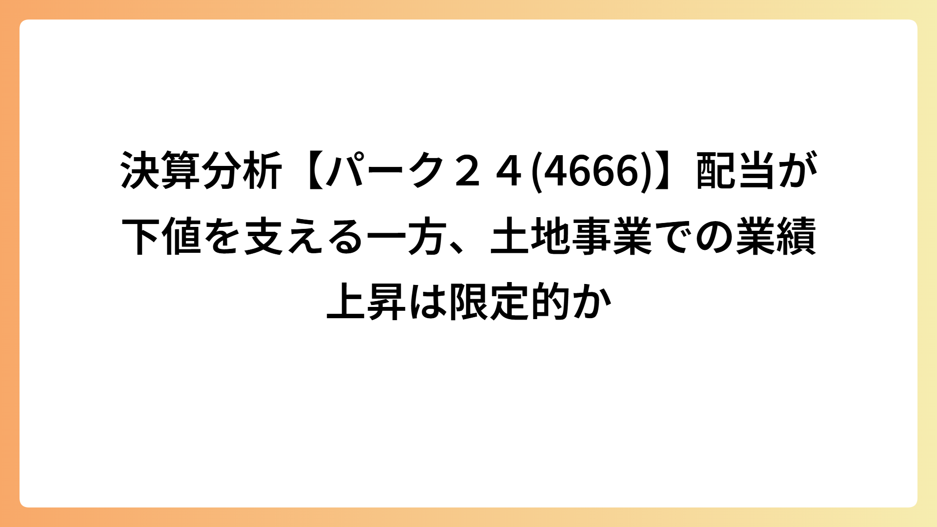パーク24(4666)|配当が下値を支える一方、業績上昇は限定的