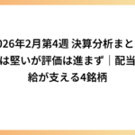 【2026年2月第4週 決算分析まとめ】下値は堅いが評価は進まず|配当と需給が支える4銘柄