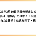 今回の決算は、“急騰の起点”ではなく“初動完了の確認”として消化されたといえます。