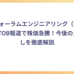 本記事では、株価上昇の理由やTOBの内容、今後の見通しを初心者にもわかりやすく解説します。また、リスクや投資判断の注意点についても丁寧に整理しているため、フォーラムエンジニアリング株を保有中の方や投資を検討している方にとって、重要な判断材料となる内容です。