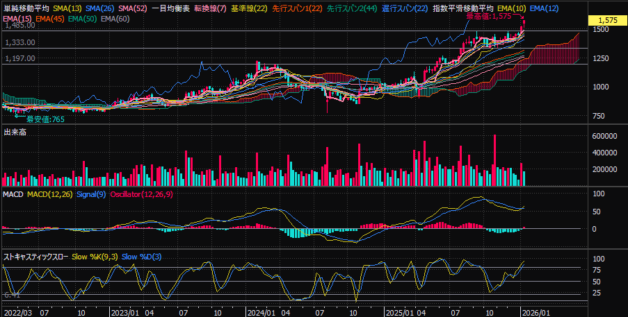 長期にわたって上値を抑えていた1,485円を明確に上抜け、同水準はサポートラインへ転換したと判断されます。