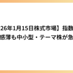 【2026年1月15日株式市場】指数は方向感薄も中小型・テーマ株が急騰