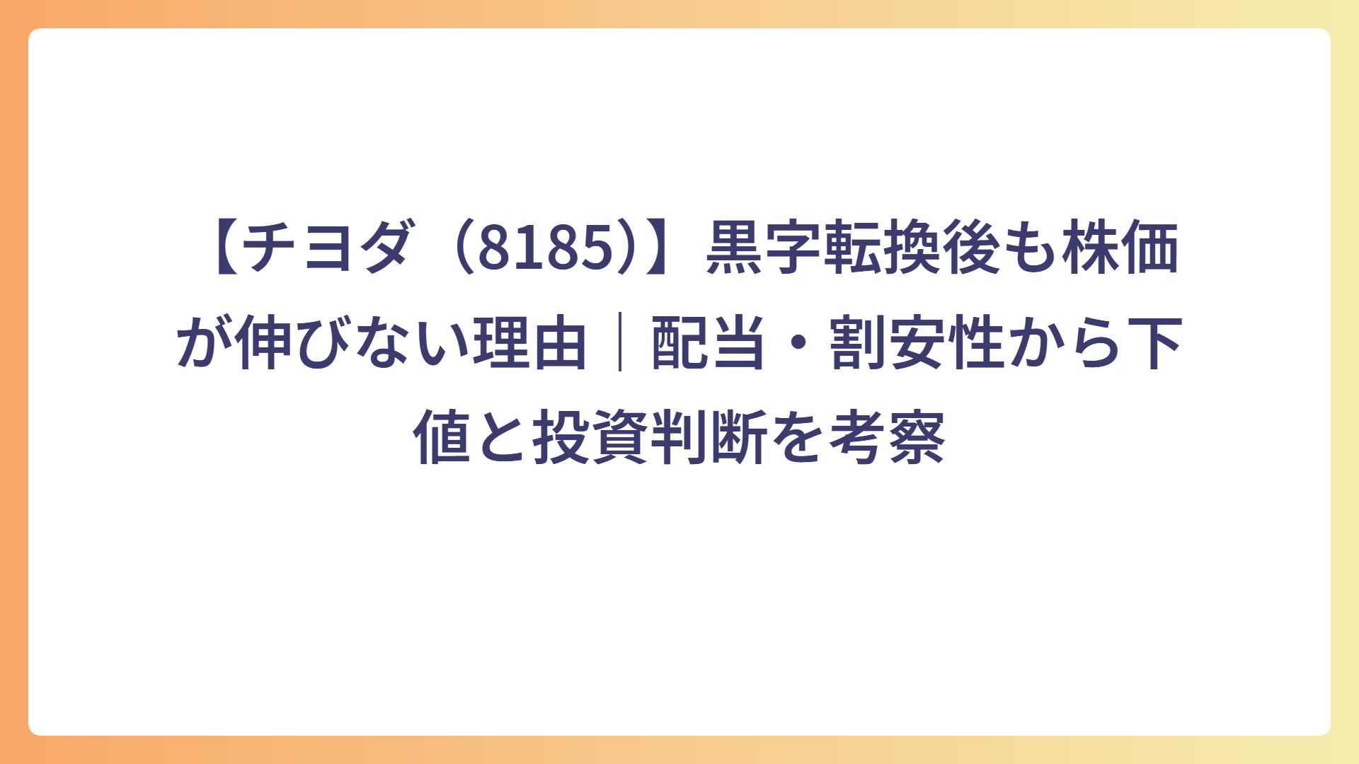 この点が、黒字転換後も株価が長期的な上昇トレンドに入りにくかった要因のひとつと考えられます。