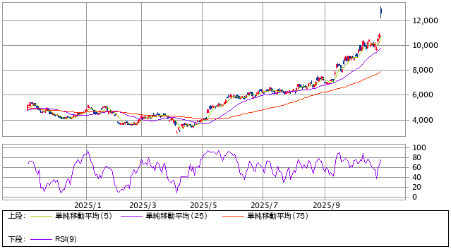 移動平均線を見ると、株価は25日線・75日線を上回る位置で推移しており、短期的な買い圧力が強いことが分かります。