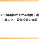 インフラ関連株は一見すると地味ですが、実は“遅れて大きく動くテーマ株”として注目されています。