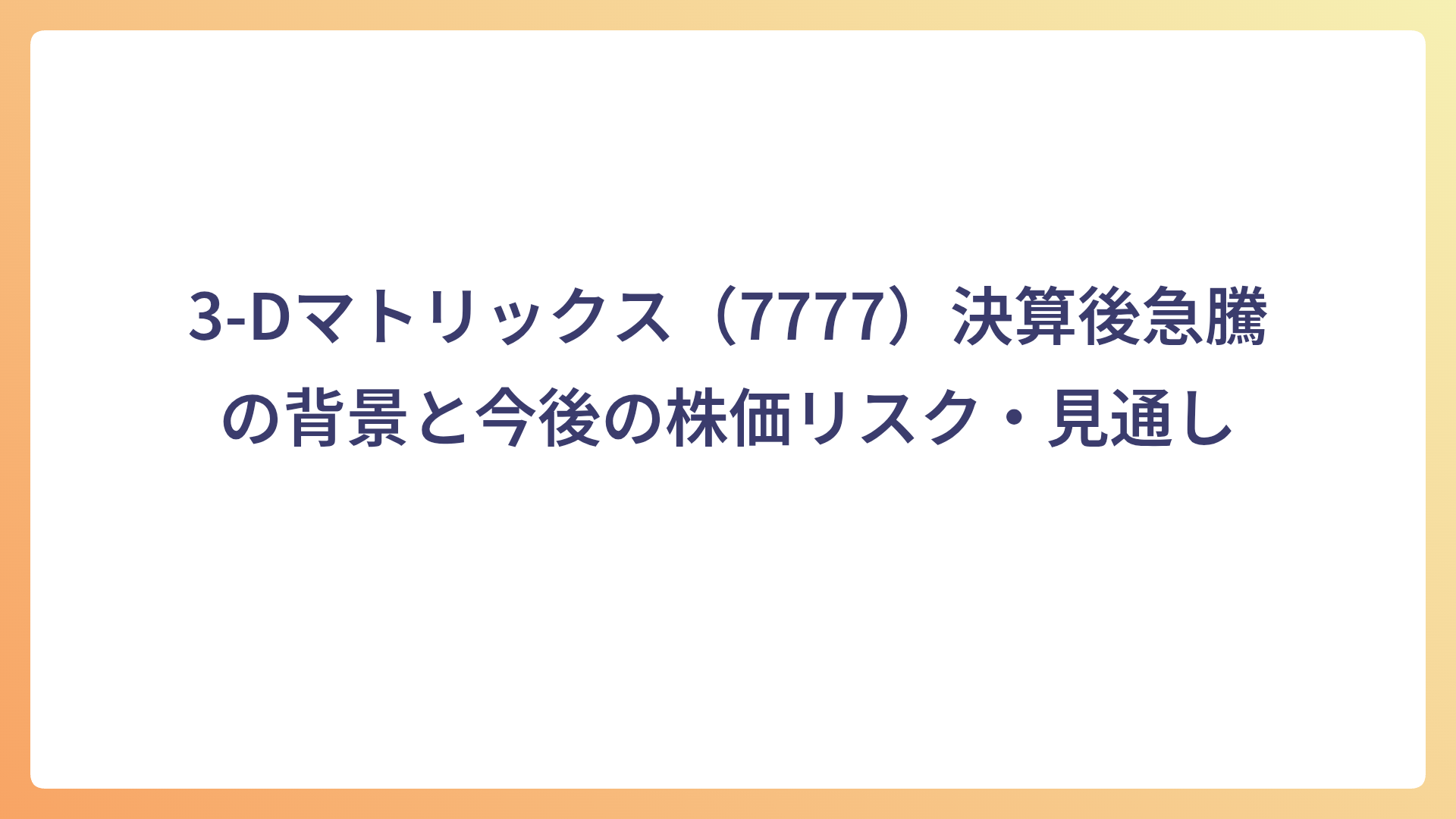 ※本記事は情報提供を目的としており、投資判断を推奨するものではありません。投資は自己責任で行ってください。