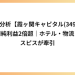 決算分析【霞ヶ関キャピタル(3498)】中間純利益2倍超|ホテル・物流・ホスピスが牽引