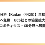 急騰分析【Kudan(4425)】年初来高値圏へ急騰|UCS社との協業拡大IRでロボティクス・XR分野へ展開