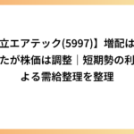 協立エアテックは安心して保有できるディフェンシブ銘柄である一方、短〜中期で資金効率を高めたい投資家にとっては、利確や資金移動を検討する判断も合理的と言えます。